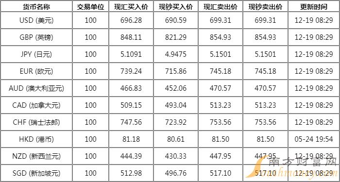 邪眉邪眼的香菇 招商银行外汇牌价表12月19日 招行人民币对美元汇率多少?下面同大脸怪来看看。