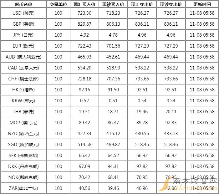 邪眉邪眼的香菇 建设银行外汇牌价表11月8日 建设银行人民币汇率是多少?下面同大咖君来看看。