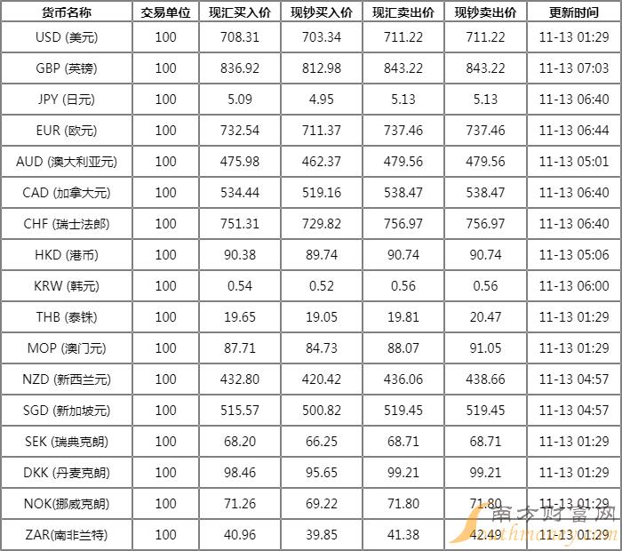 邪眉邪眼的香菇 建设银行外汇牌价表11月13日 建设银行人民币对美元汇率是多少?下面同小红帽来看看。