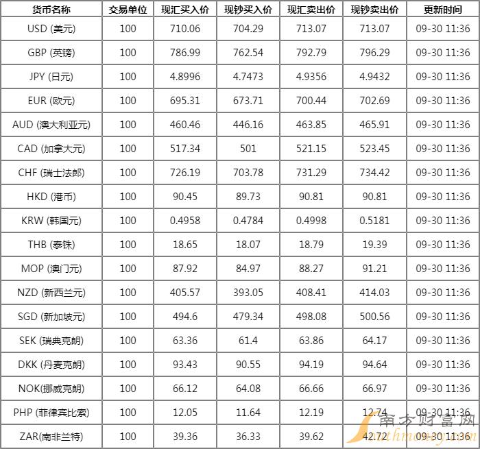 邪眉邪眼的香菇 周五中国银行外汇牌价表 9月30日中行人民币汇率多少?下面同大脸怪来看看。