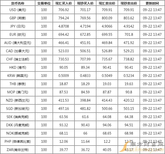 邪眉邪眼的香菇 中国银行 外汇牌价表9月22日 中行人民币汇率多少?下面同三江君来看看。