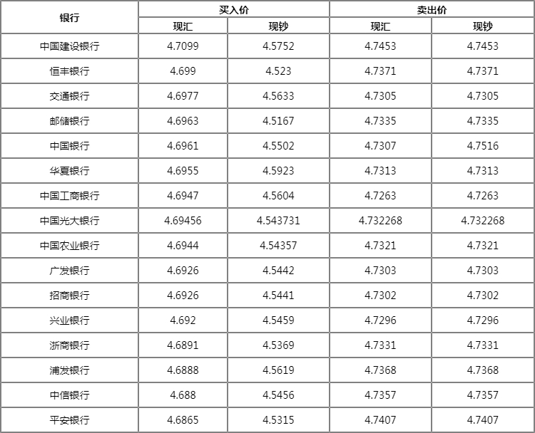注:市场行情变化较快,以上汇率行情数据仅供参考,请以当时最新行情为准。