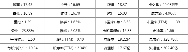 | 最低:3.34 | 昨收:3.35 | 跌停:3.02 | 成交额:1.41亿 |