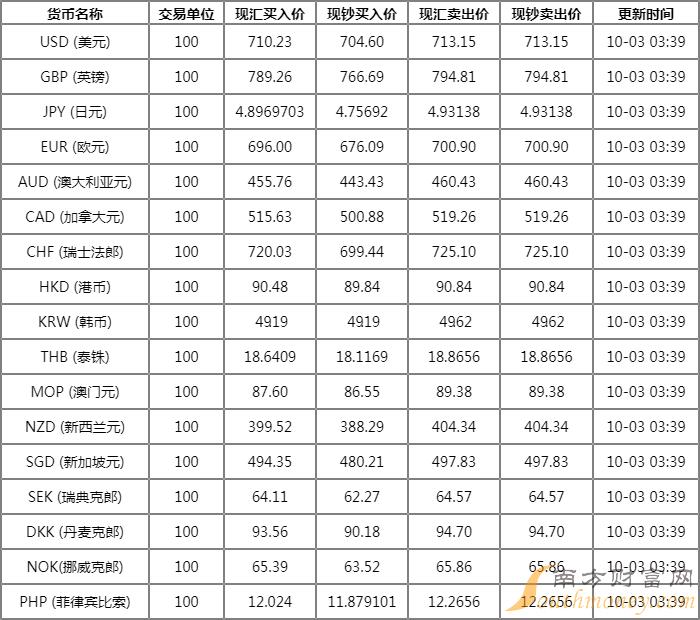 水汪汪的的脆皮肠 浦发银行外汇牌价表一览10月3日 浦发银行人民币对美元汇率是多少?下面同财言君来看看。