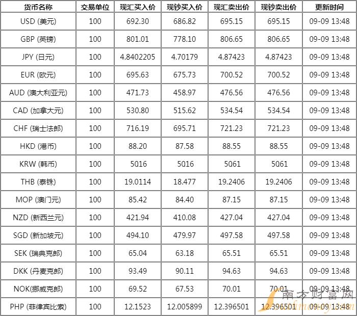 9月9日,银行间外汇市场人民币对美元汇率中间价报6.9098元,较前值调升50个基点,为连续第二日上调。本周该中间价累计调降181个基点。