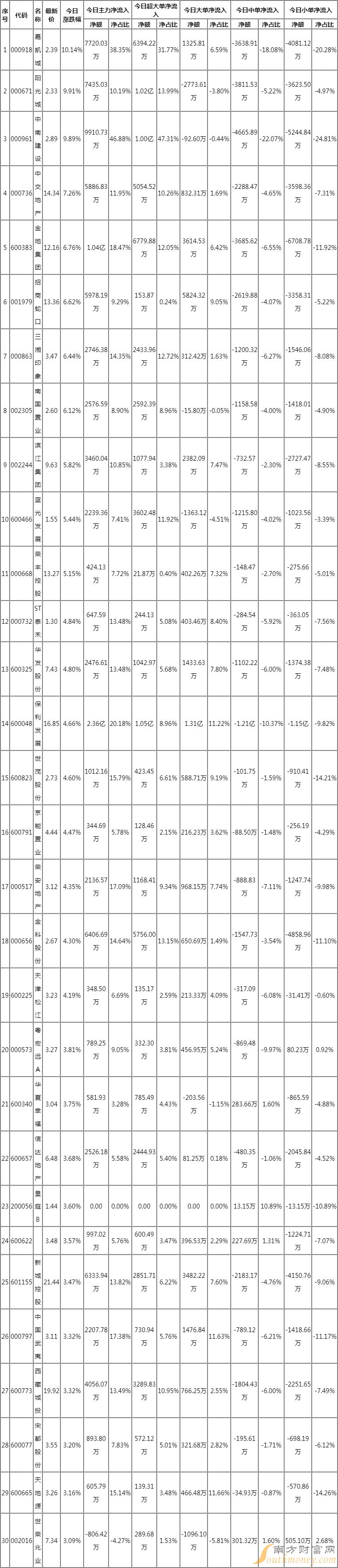 今日中单净流入:-6.9080亿中单净比:-5.09%
