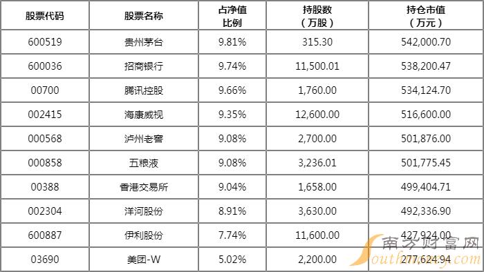 易方达蓝筹精选混合(005827)重仓该股,前十大重仓股有哪些?