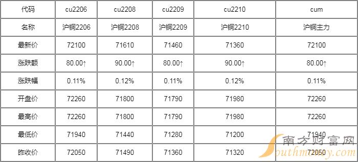 沪铜主力:今开:72260.00最高:72260.00昨结:72020.00最低:71940.00