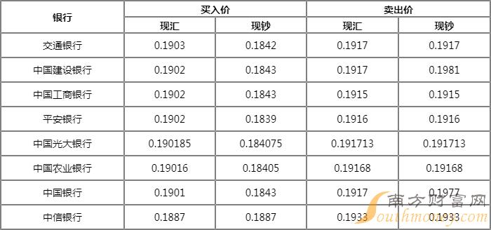 结汇最优:交行 汇率: 0.19031000泰国铢现汇可结汇为190.30人民币