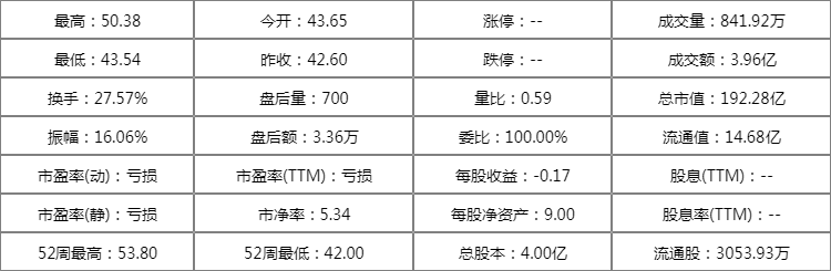 2020年公司ROE:-43.26%,ROA:-15.5%,毛利率4.16%,净利率-5.16%;每股收益-0.58元。
