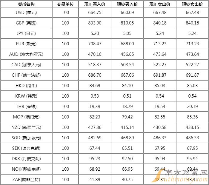 建设银行外汇牌价实时汇率表 5月24日建行人民币对美元汇率是多少?下面同财言君来看看。