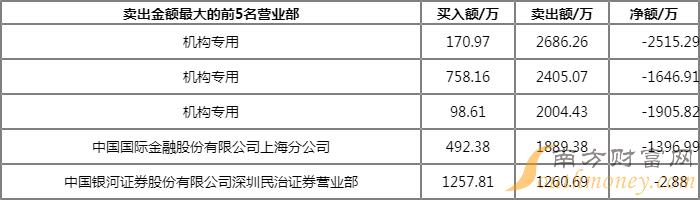 当天机构净卖出前三的股票分别是金科股份、荣安地产、长城科技,净流出金额分别是2.67亿元、6068万元、5824万元。
