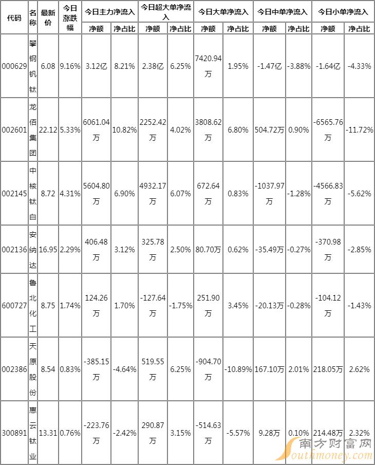钛白粉资金流向明细