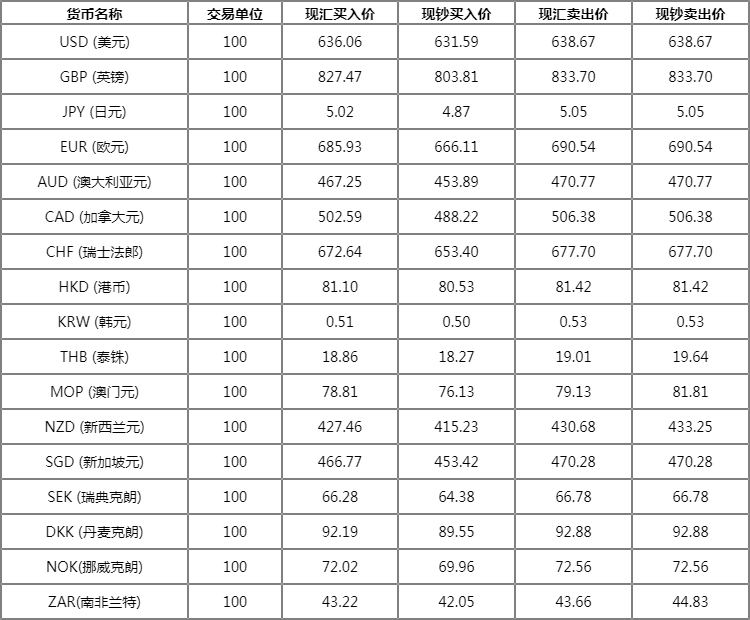 注:市场行情变化较快,以上汇率行情数据仅供参考,请以当时最新行情为准。