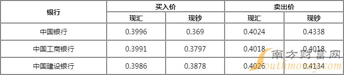 今日银行新西兰元汇率牌价