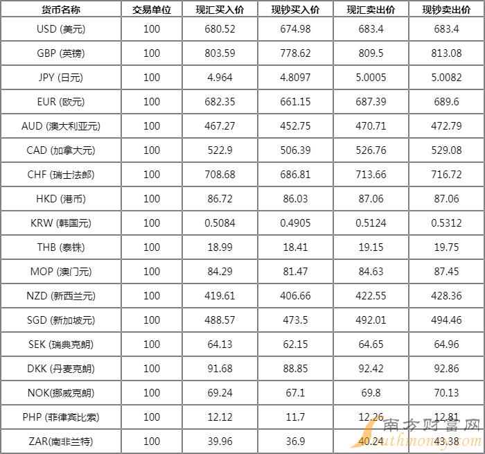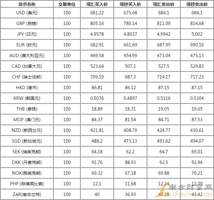 浓眉环眼的篮球 中国银行外汇牌价表2022 8月22日人民币汇率多少?下面同老张来看看。