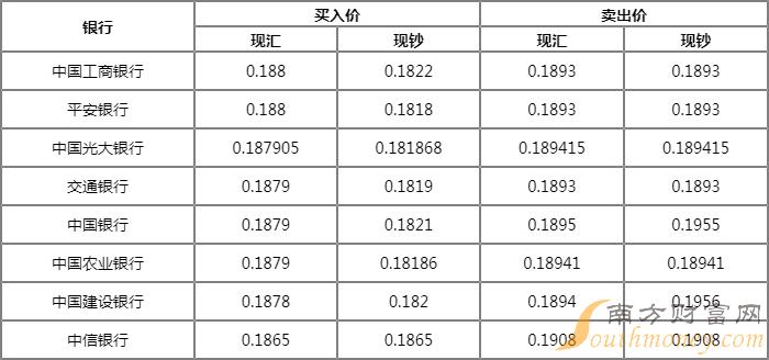 今日银行泰铢汇率是多少?