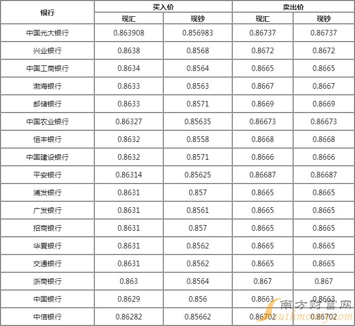 结汇最优:光大 汇率: 0.8639081000港币现汇可结汇为863.91人民币