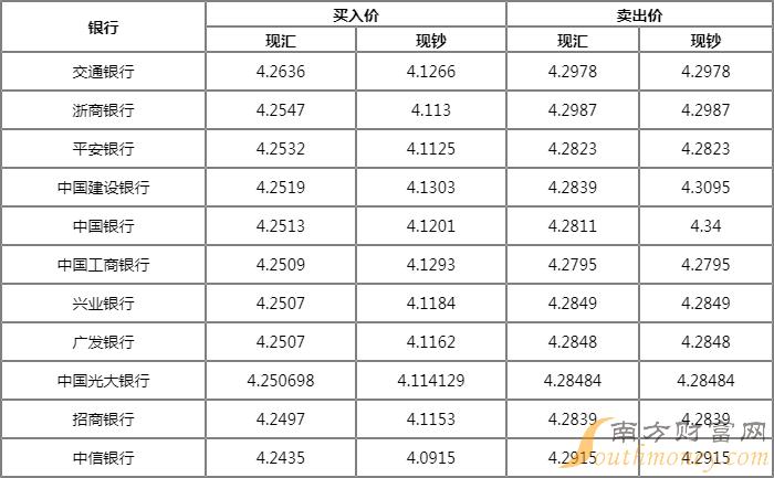 4月30日银行新西兰元汇率表一览
