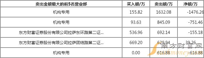 成交额:8861.46万元 合计买入:3491.73万元 合计卖出:5369.73万元 净额:-1878.00万元