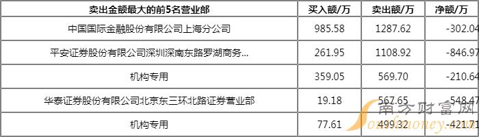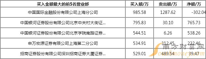 上榜的前五大买卖营业部合计成交8979.21万元,占该股当天成交总金额的比例为19.65%,其中,买入成交额为4107.65万元,卖出成交额为4871.56万元,合计净卖出763.91万元。