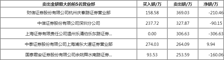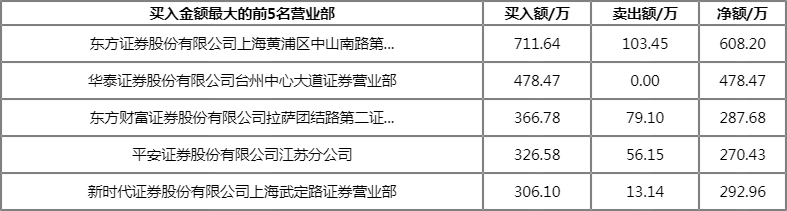 上榜的前五大买卖营业部合计成交4726.49万元,占该股当天成交总金额的比例为17.89%,其中,买入成交额为2953.43万元,卖出成交额为1773.06万元,合计净买入1180.37万元。