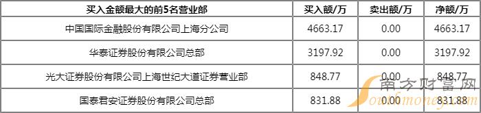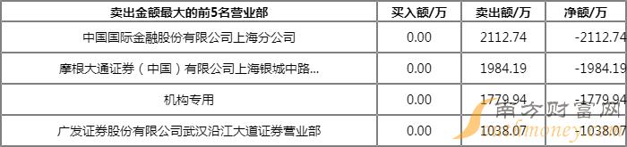 卖三为中国国际金融上海分公司,该席位卖出724.30万元。近三个月内该席位共上榜1161次,实力排名第5。