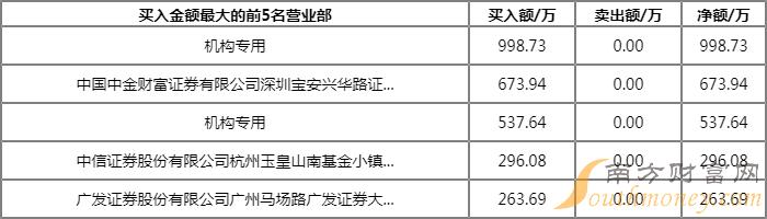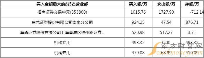 卖出营业部中,卖出金额居首的是华泰证券股份有限公司苏州何山路证券营业部,卖出金额为731.72万元。买卖金额相抵,机构专用席位今日净买入该股1536.37万元。