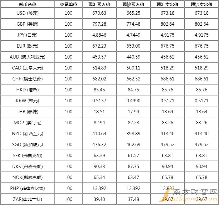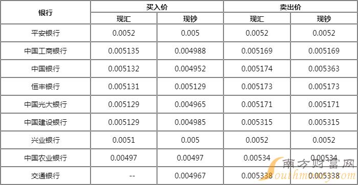 今日银行韩元汇率牌价一览