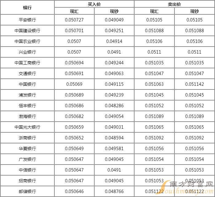 结汇最优:平安 汇率: 0.0507271000日元现汇可结汇为50.73人民币
