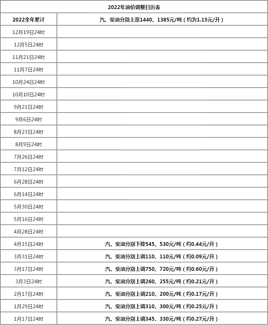 2022今年国内油价调整窗口周期时间表