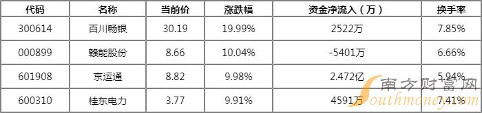 7月1日上午,绿色电力概念板块走高,百川畅银涨超12%,赣能股份、京运通、桂东电力涨停,浙江新能涨近9%,天富能源、世茂能源、中兰环保等跟涨。
