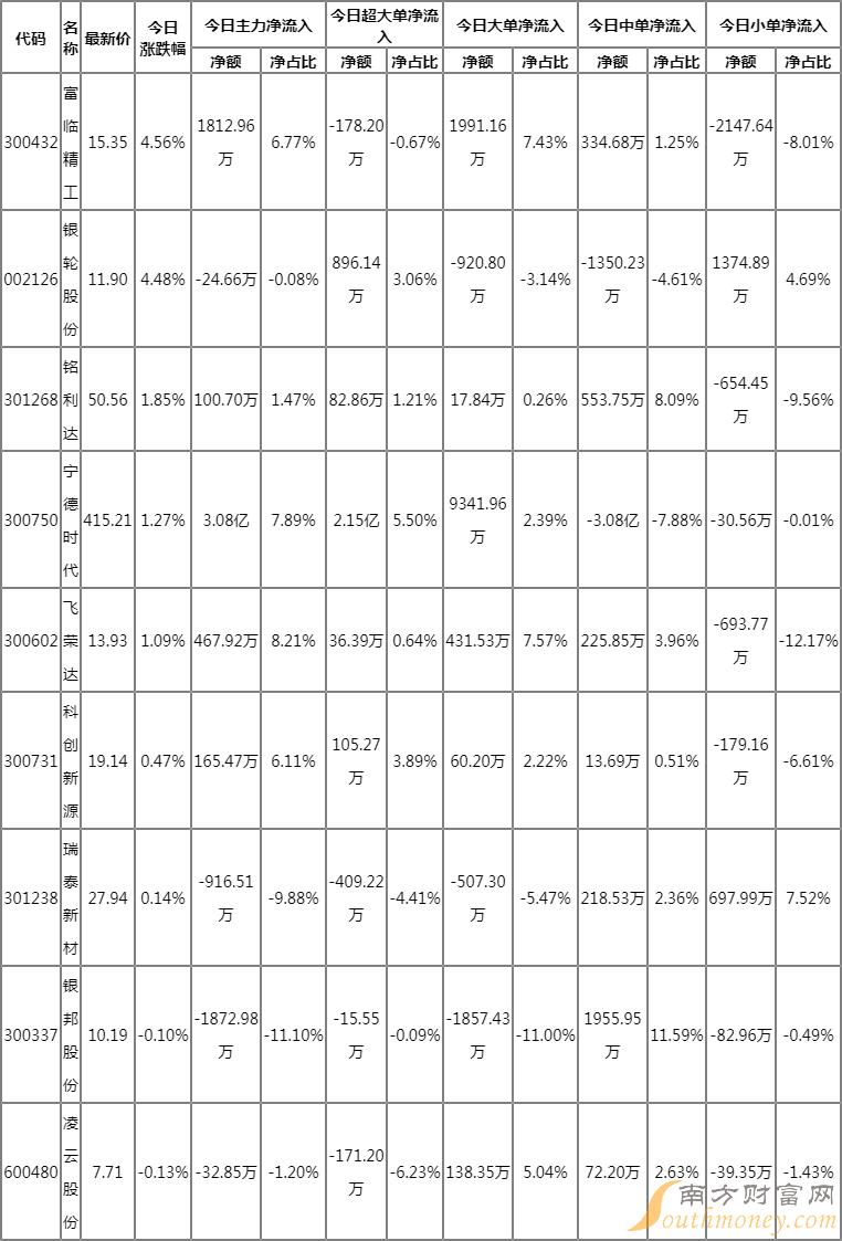 麒麟电池主力净流入3.0528亿元