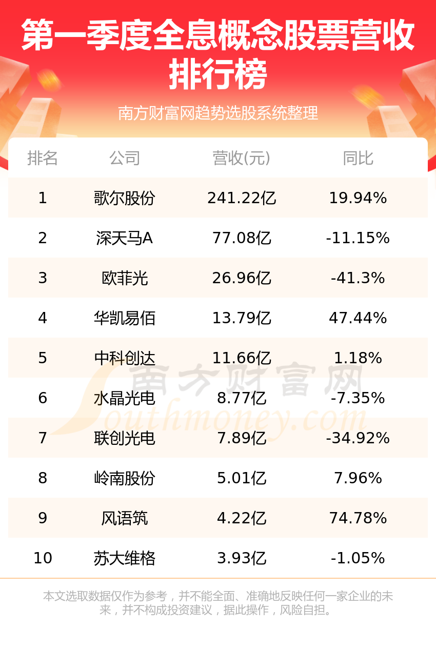 在所属电信设备概念2023年第一季度营业总收入同比增长中,创意信息是超过30%以上的企业;中兴通讯、中际旭创、新元科技等5家均不足10%。
