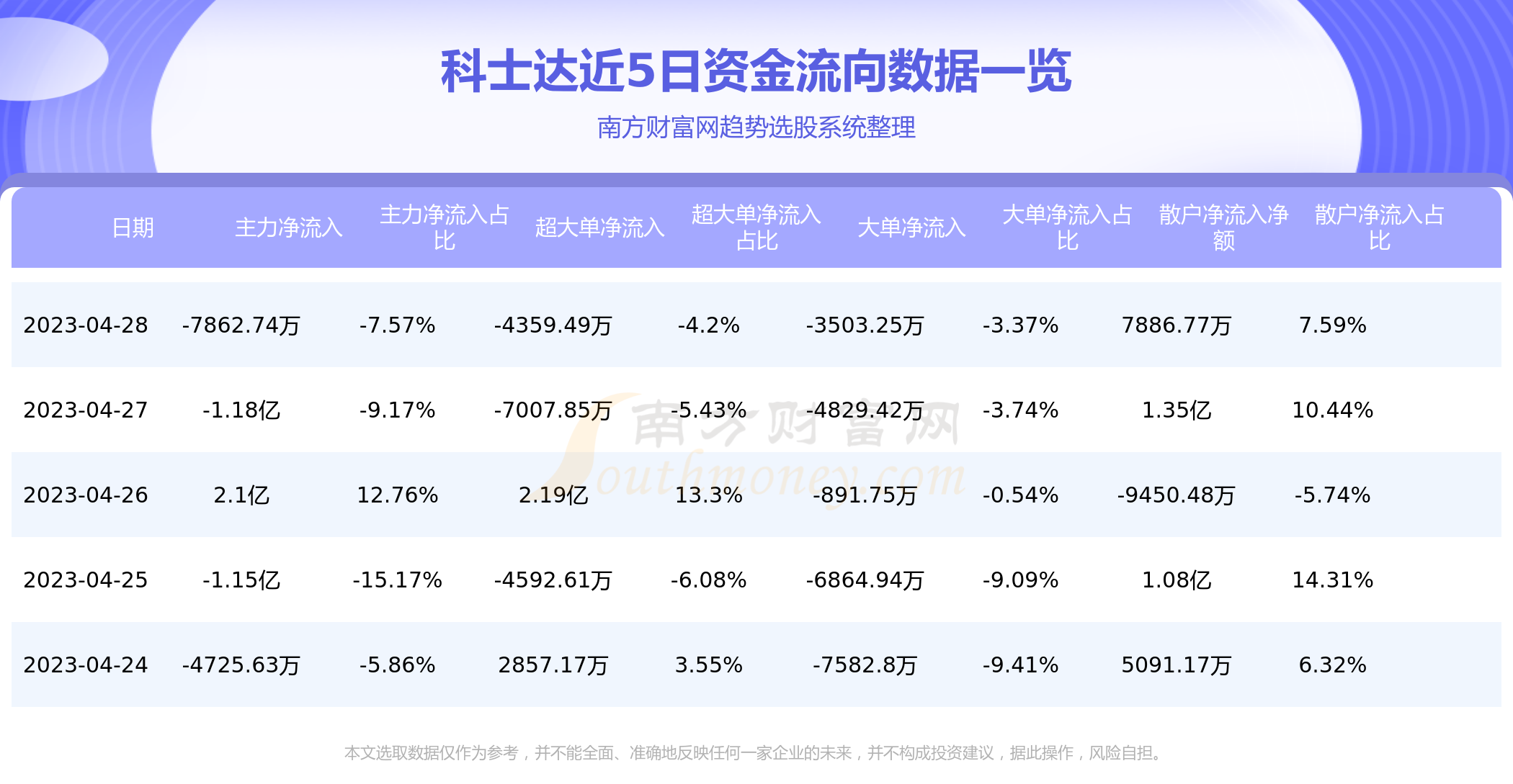 近5日资金流向一览见下表: