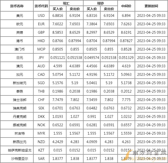 池小蝌蚪 100欧元等于多少人民币?2023年4月24日兑换汇率价格查询