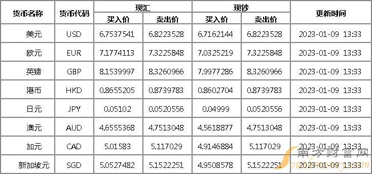 池小蝌蚪 汇丰银行外汇牌价表 1月9日汇丰银行人民币对美元汇率多少?下面同道财君来看看。