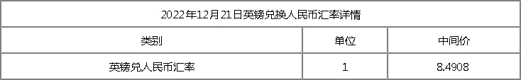 池小蝌蚪 英镑兑人民币今日汇率 12月21日人民币对英镑汇率多少?下面同点金君来看看。
