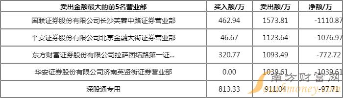 成交额:7478.33万元 合计买入:2582.45万元 合计卖出:4895.88万元 净额:-2313.44万元