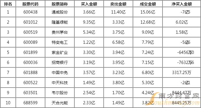 8月9日收盘,北向资金买卖前十成交榜出炉,通威股份(600438)、隆基绿能(601012)、贵州茅台(600519)位居沪股通成交前三,宁德时代(300750)、阳光电源(300274)、北方华创(002371)位居深股通成交前三。