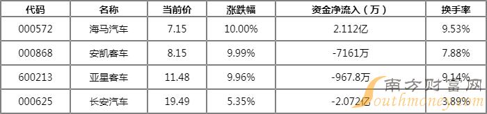 汽车整车主力净流出10.0295亿元