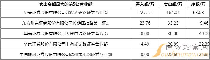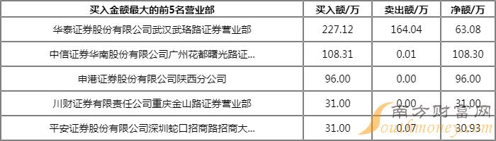 第一大买入营业部及卖出营业部均为华泰证券股份有限公司武汉武珞路证券营业部,买入金额为227.12万元,卖出金额为164.04万元。