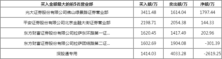 4月6日上榜原因:日涨幅达到15%的前5只证券。纽泰格股票上榜的前五大买卖营业部买入成交额为5509.55万元,占该股当天成交总金额的比例为31.86%,卖出成交额为1387.48万元,占该股当天成交总金额的比例为8.02%,合计净买入4122.07万元,上海资金买入,成功率43.95%。