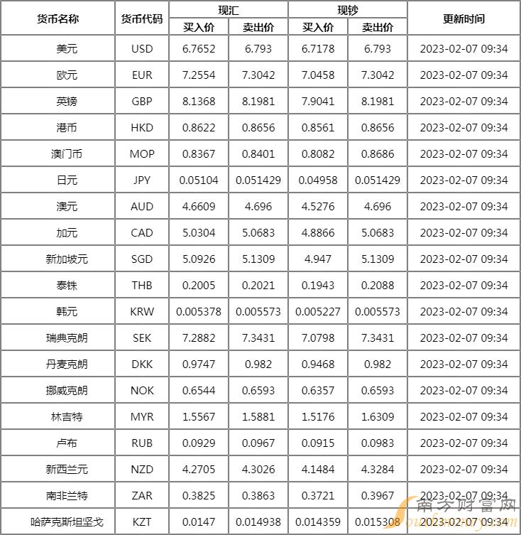 今日人民币汇率中间价一览 2023年2月6日人民币对美元中间价报6.7737,下调355个基点