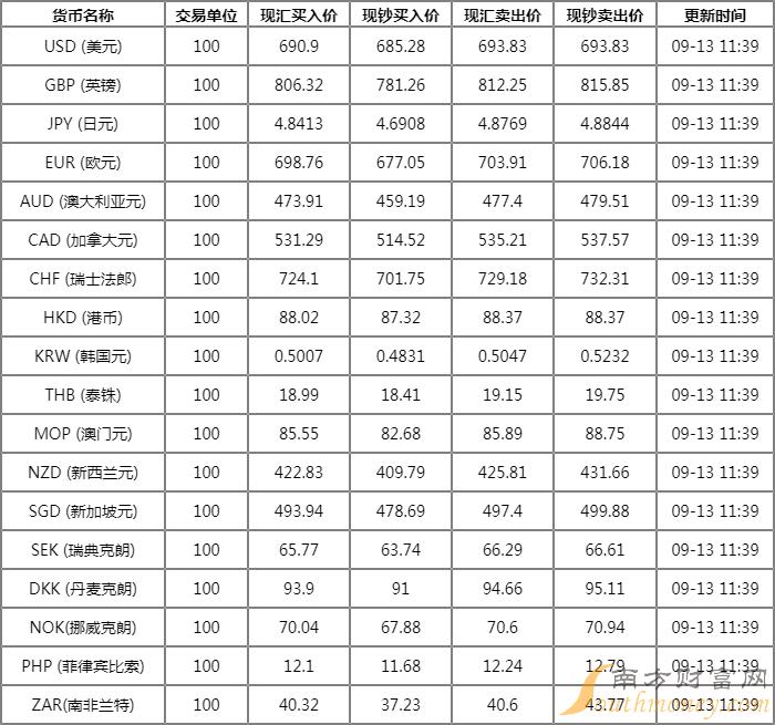 乌黑眸子的舒 中国银行外汇牌价表 9月13日中行人民币汇率是多少?下面同三江君来看看。