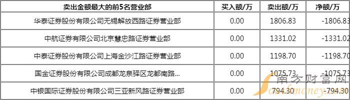 成交额:9851.59万元 合计买入:3645.00万元 合计卖出:6206.59万元 净额:-2561.59万元
