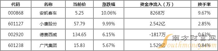 乌黑眸子的舒 盘中,华为汽车涨幅2.7%,安凯客车涨停。下面同大周来看看。