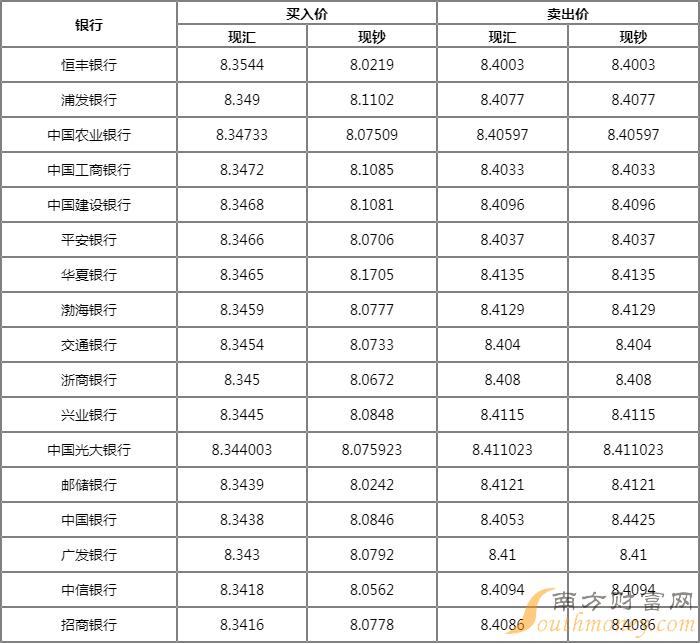 银行港元汇率表查询