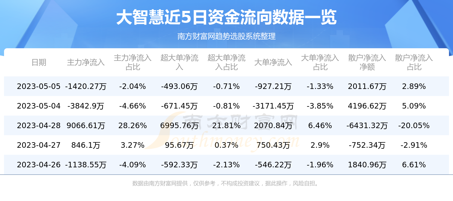 近5日资金流向一览见下表: