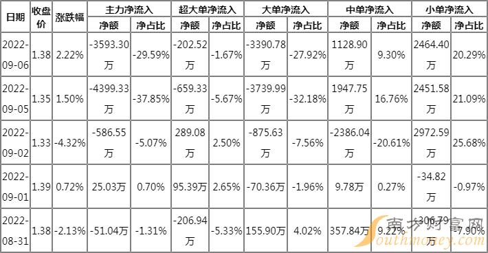 资金流向数据方面,9月6日主力资金净流出3593.3万元,游资资金净流入1128.9万元,散户资金净流入2464.4万元。